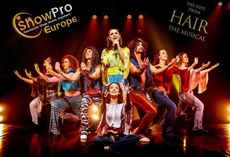 Best of — HAIR the Musical is a vibrant and emotionally charged live production celebrating some of the most iconic songs from the legendary stage musical HAIR. Performed with strong live vocals, modern staging and elegant choreography, the show brings the spirit, honesty and musical freedom of HAIR to the stage in our own ShowPro Europe interpretation — not as a replica theatre production.